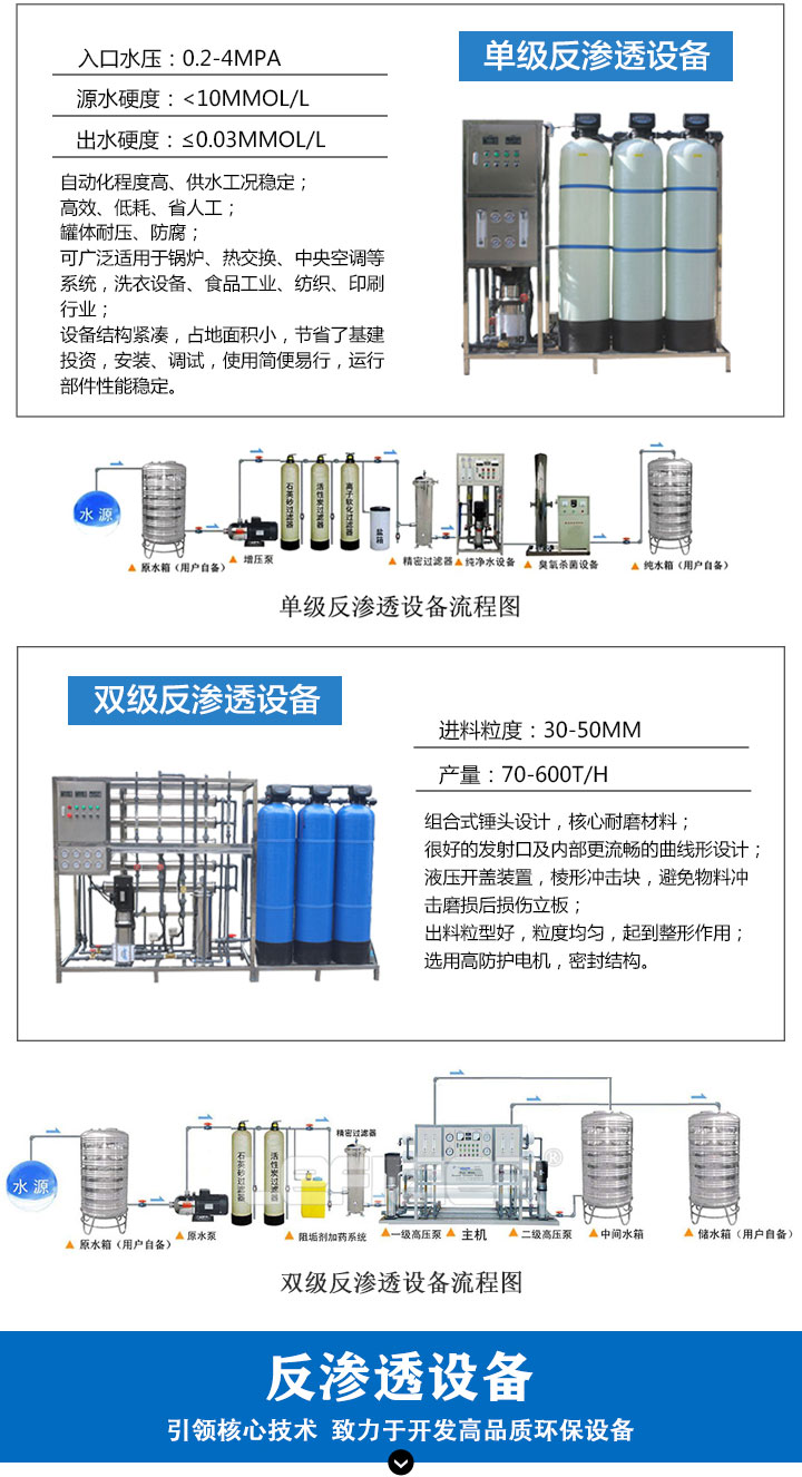 ro反滲透純凈水設(shè)備產(chǎn)品簡(jiǎn)介:ro反滲透純凈水設(shè)備的生產(chǎn)工藝核心是反滲透膜,利用膜的滲透原理,通過(guò)一定外力,反于自然滲透方向的力,將濃溶液中的水向稀溶液中滲透,即反...