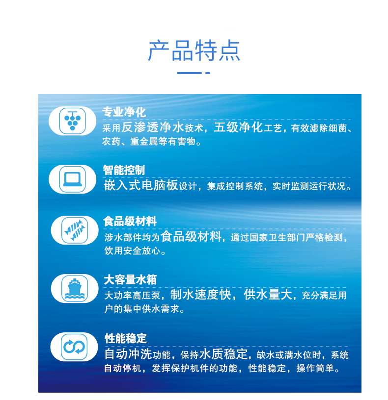 現(xiàn)制現(xiàn)飲,保障水質(zhì)新鮮。擁有專利反滲透高精度濾芯、UV即時抑菌技術(shù),真正有效地濾除水中雜質(zhì),保證飲水安全。而且可以同時提供高溫?zé)崴统厮糠謾C(jī)型亦可提供冰水,滿足用戶不同的飲用需求。