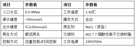 洗浴用軟化水設(shè)備性能參數(shù):